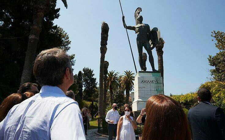 Πρώτος σταθμός του Πρωθυπουργού στην Κέρκυρα ήταν το Αχίλλειο, όπου αντίκρυσε μία «εικόνα απογοητευτική», η οποία δεν αρμόζει στο «σπουδαίο» μουσείο που αποτελεί σημείο αναφοράς για το νησί. Ο Κυριάκος Μητσοτάκης ξεναγήθηκε στο εσωτερικό του ιστορικού κτηρίου και στους κήπους, συνοδευόμενος από την Υπουργό Πολιτισμού και Αθλητισμού Λίνα Μενδώνη και τον Διευθύνοντα Σύμβουλο της ΕΤΑΔ, Στέφανο Βλαστό.
