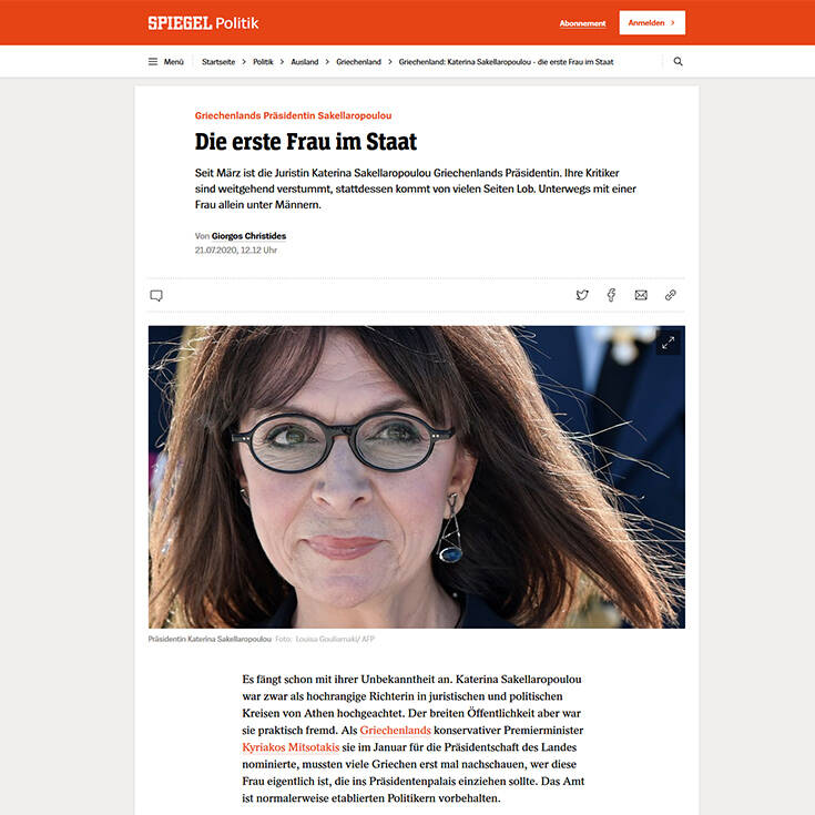 Με εκτενές ρεπορτάζ το γερμανικό περιοδικό «Der Spiegel» αναφέρεται στην Κατερίνα Σακελλαροπούλου. Το γερμανικό περιοδικό υπογραμμίζοντας μεταξύ άλλων ότι πρόκειται για την πρώτη γυναίκα στο ανώτατο Πολιτειακό αξίωμα.