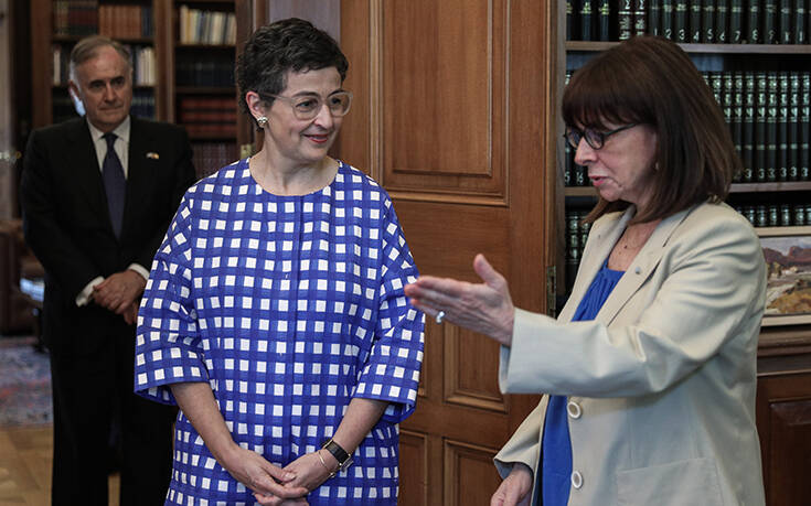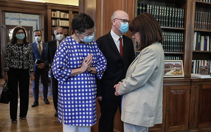Την επίσκεψη της υπουργού Εξωτερικών της Ισπανίας, Αράντσα Γκονθάλεθ Λάγια, δέχθηκε η πρόεδρος της Ελληνικής Δημοκρατίας, Κατερίνα Σακελλαροπολου.