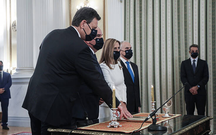 Για την ιστορία, πριν από λίγα λεπτά ορκίστηκαν ο καθηγητής στο Τμήμα Διεθνών και Ευρωπαϊκών Οικονομικών Σπουδών του Οικονομικού Πανεπιστημίου Αθηνών Παναγιώτης Τσακλόγλου, ως νέος υφυπουργός Εργασίας και Κοινωνικών Υποθέσεων, αρμόδιος για θέματα Κοινωνικής Ασφάλισης, η κ. Ζωή Ράπτη, βουλευτής Β1 Βόρειου Τομέα Αθηνών, που αναλαμβάνει τη θέση της υφυπουργού Υγείας, αρμόδιας για θέματα Ψυχικής Υγείας και ο βουλευτής Κορινθίας Νίκος Ταγαράς που αναλαμβάνει τη θέση του υφυπουργού Περιβάλλοντος και Ενέργειας, αρμόδιου για θέματα Προστασίας του Περιβάλλοντος.