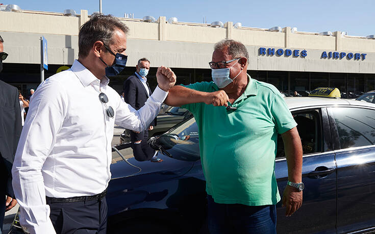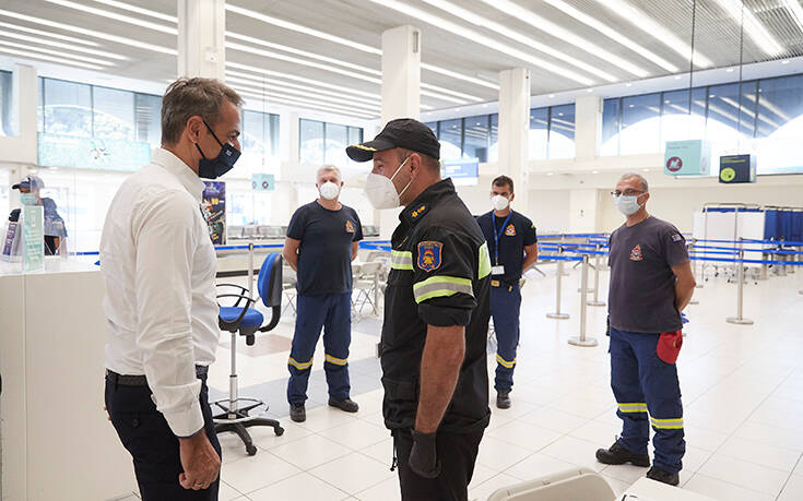 Νωρίτερα ο πρωθυπουργός κατά την άφιξή του στη Ρόδο επισκέφτηκε το νοσηλευτικό προσωπικό που πραγματοποιεί δειγματοληπτικά τεστ για τον COVID-19 στους χώρους του αερολιμένα, τα στελέχη των Σωμάτων Ασφαλείας αλλά και τους εργαζόμενους στο χώρο ευχαριστώντας τους για τις καλές υπηρεσίες που προσφέρουν. «Είναι πάρα πολύ σημαντική η δουλειά η οποία γίνεται. Είμαστε η μόνη χώρα η οποία έχει ένα τόσο οργανωμένο σύστημα, με στοχευμένους ελέγχους στην Ευρώπη. Είναι και αυτό μία διαφήμιση για την πατρίδα μας», ανέφερε, μεταξύ άλλων, ο κ. Μητσοτάκης.