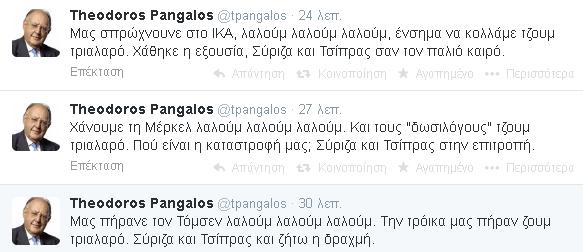 Σε μια περίεργη σειρά αναρτήσεων στον προσωπικό του λογαριασμό στο twitter προχώρησε σήμερα το μεσημέρι ο Θεόδωρος Πάγκαλος.