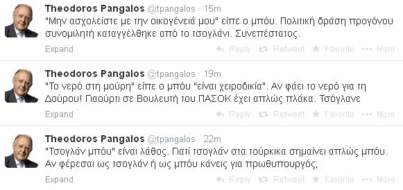 Και συνέχισε: «”Το νερό στη μούρη” είπε ο μπόυ “είναι χειροδικία”. Αν φάει το νερό για τη Δούρου! Γιαούρτι σε Βουλευτή του ΠΑΣΟΚ έχει απλώς πλάκα. Τσόγλανε».