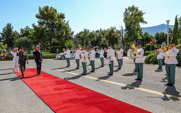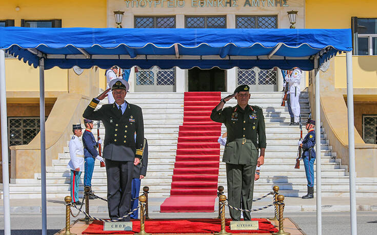 Τον υποδέχθηκε ο αρχηγός του Γενικού Επιτελείου Εθνικής Άμυνας (ΓΕΕΘΑ), στρατηγός Κωνσταντίνος Φλώρος.