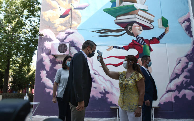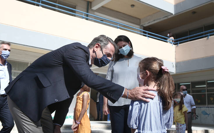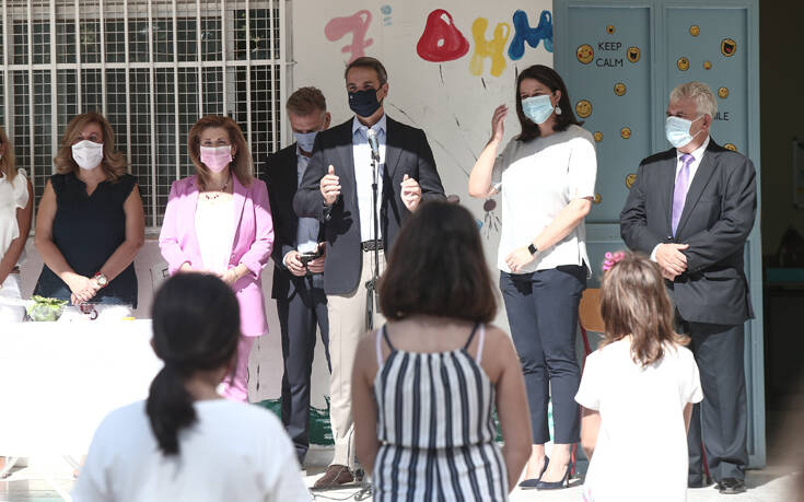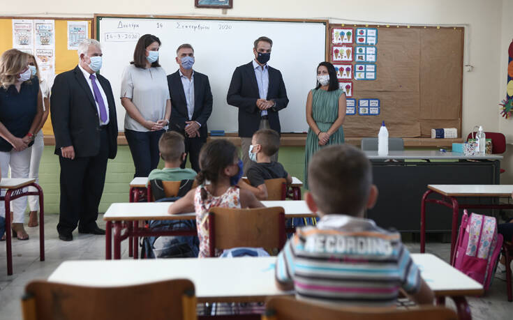 Στη συνέχεια ο πρωθυπουργός επισκέφθηκε σχολικές αίθουσες και συνομίλησε με μαθητές που την πρώτη τους ημέρα επιστροφής στα θρανία ενημερώνονταν για τους νέους τρόπους συμπεριφοράς και για τους κανόνες υγιεινής που με τη βοήθεια των δασκάλων θα ακολουθήσουν σε αυτή τη νέα -διαφορετική χρονιά.