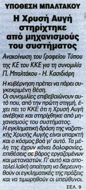 Δείτε εδώ όλες τις εξελίξεις για την υπόθεση Μπαλτάκου-Κασιδιάρη