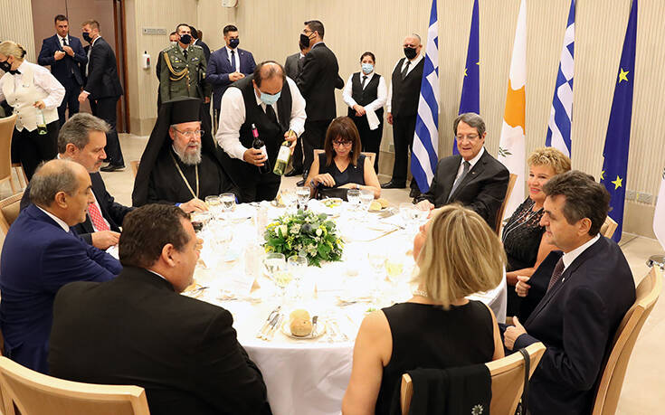 Από την πλευρά του ο Πρόεδρος Αναστασιάδης ανέφερε ότι το γεγονός ότι αυτή είναι η πρώτη επίσημη επίσκεψή σας εκτός Ελλάδος από την ανάληψη των υψηλών καθηκόντων σας αποτελεί άλλη μία επιβεβαίωση αφενός των άρρηκτων δεσμών που μας συνδέουν και αφετέρου του άριστου επιπέδου των σχέσεων μεταξύ των χωρών μας.