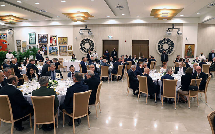 Επίσημο δείπνο προς τιμήν της Προέδρου της Ελληνικής Δημοκρατίας Κατερίνας Σακελλαροπούλου παρέθεσε ο Πρόεδρος της Κυπριακής Δημοκρατίας Νίκος Αναστασιάδης στο Προεδρικό Μέγαρο Κύπρου.