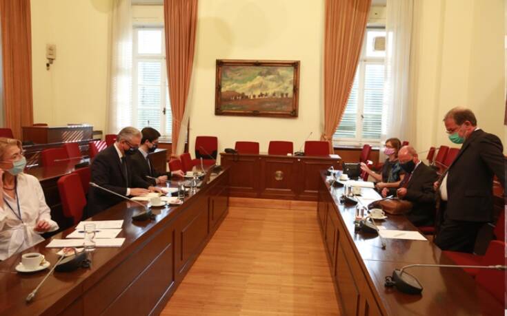 Στη συνάντηση παρέστησαν ο Διπλωματικός Σύμβουλος της Βουλής των Ελλήνων, Πρέσβης κ. Κωνσταντίνος Οικονομίδης, και η Επιτετραμμένη της Γερμανικής Πρεσβείας στην Αθήνα, κυρία Heike Uta Dettmann.
