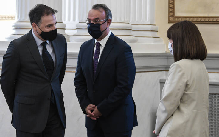 Παρόντες ήταν επίσης ο υπουργός Οικονομικών Χρήστος Σταϊκούρας και ο Διοικητής της Τράπεζας της Ελλάδος Γιάννης Στουρνάρας.