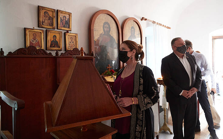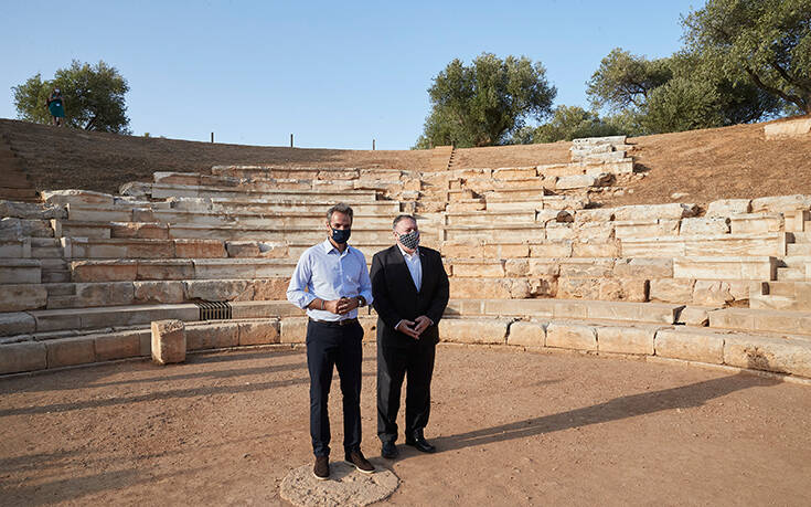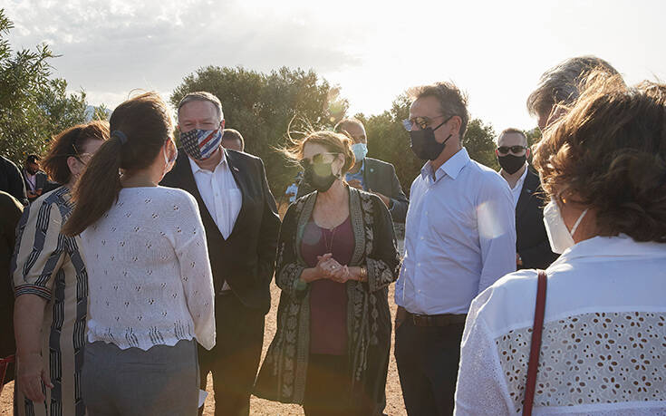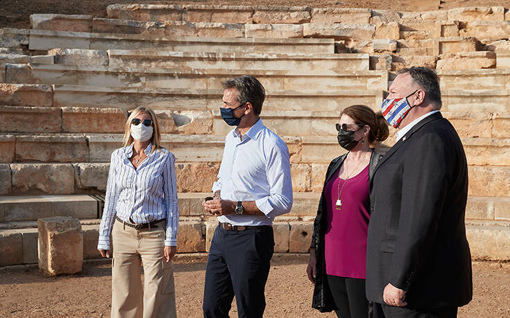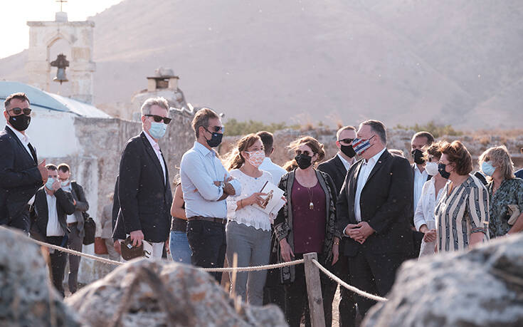 Τον αρχαιολογικό χώρο της Αρχαίας Απτέρας, στα νοτιοανατολικά του Κόλπου της Σούδας στην Κρήτη, επισκέφθηκαν το απόγευμα ο πρωθυπουργός Κυριάκος Μητσοτάκης και ο υπουργός Εξωτερικών των Ηνωμένων Πολιτειών της Αμερικής Μάικ Πομπέο, συνοδευόμενοι από τις συζύγους τους Μαρέβα Γκραμπόφσκι – Μητσοτάκη και Σούζαν Πομπέο.
