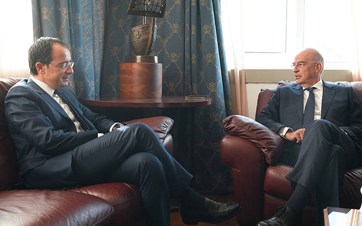 Ο κ. Δένδιας έγινε δεκτός από τον Κύπριο ομόλογό του, Νίκο Χριστοδουλίδη, στο υπουργείο Εξωτερικών στη Λευκωσία. «Η σημερινή μας συνάντηση εντάσσεται στο πλαίσιο του διαρκούς συντονισμού Ελλάδας – Κύπρου σε όλα τα επίπεδα, ενόψει μάλιστα και του αυριανού πολύ σημαντικού Ευρωπαϊκού Συμβουλίου: Ενός Συμβουλίου που θα κληθεί να εξετάσει συνολικά το πλέγμα των ευρωτουρκικών σχέσεων.