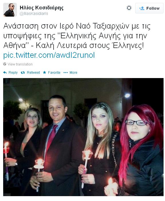 Σύμφωνα με tovima.gr, ο κ. Κασιδιάρης αντίθετα με ό,τι είχε συμβεί τον περασμένο Μάρτιο στο μνημόσυνο για τον θάνατο των αξιωματικών της ΔΙΑΣ στου Ρέντη οπότε και είχε εκδιωχθεί, τώρα έγινε «αποδεκτός» από υψηλόβαθμους αξιωματικούς της ΕΛ.ΑΣ που παρακολουθούσαν την ακολουθία της Ανάστασης.