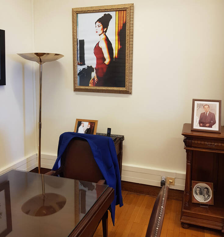 Ένα τεράστιο πορτρέτο της Μαρίας Κάλλας κοσμεί εδώ και λίγες ημέρες το γραφείο του Α’ Αντιπροέδρου της Βουλής κ. Νικήτα Κακλαμάνη. Με το που μπαίνεις βρίσκεται ακριβώς απέναντί σου. Αναπαριστά την κορυφαία Ελληνίδα υψίφωνο με βλέμμα απλανές, φορώντας ένα κατακόκκινο φόρεμα.