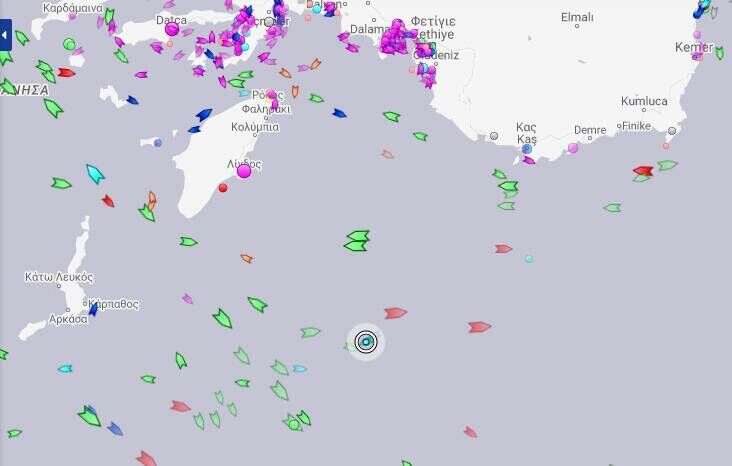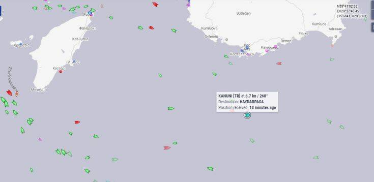 Το τουρκικό πλοίο, σύμφωνα με το συγκεκριμένο ρεπορτάζ, πλέει με μικρή ταχύτητα 35 ναυτικά μίλια νοτιοανατολικά από το Καστελόριζο.