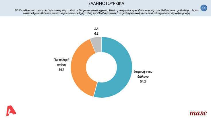 Σε ποσοστό 54,2% οι ερωτηθέντες επιμένουν πως πρέπει να υπάρξει διάλογος προκειμένου να βρεθεί λύση ενώ το 39,7% ζητά πιο σκληρή στάση από την Κυβέρνηση απέναντι στις εξελίξεις.