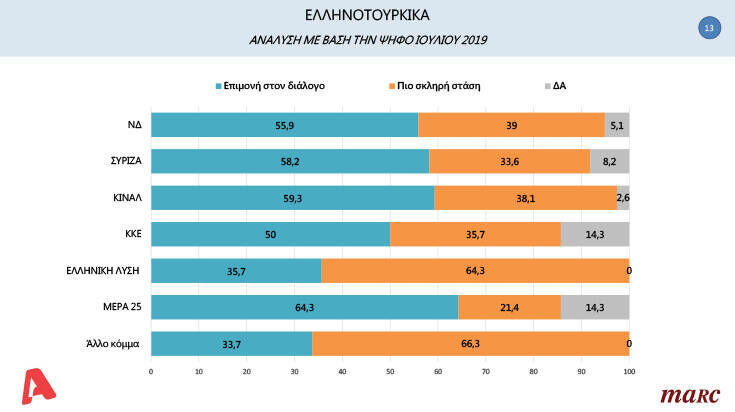 Ένα από τα πρώτα θέματα για τα οποία δέχθηκαν ερώτηση οι 1.007 ερωτηθέντες αφορούσε στην στάση της Κυβέρνησης απέναντι στα ελληνοτουρκικά ζητήματα.