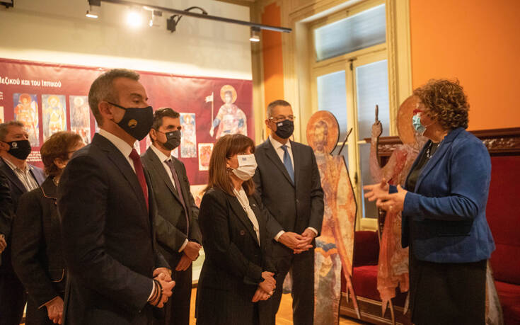 «H Θεσσαλονίκη σήμερα ξαναβρίσκει τον εξωστρεφή της χαρακτήρα», τόνισε η Κατερίνα Σακελλαροπούλου κατά την ξενάγησή της στη Δημοτική Πινακοθήκη που στεγάζεται στην Casa Bianca. Η πρόεδρος της Δημοκρατίας ευχαρίστησε για την ευγενική υποδοχή της στην πόλη και είπε ότι νιώθει ιδιαίτερη συγκίνηση που την επισκέπτεται, καθώς είναι έντονα συναισθηματικά δεμένη με εκείνη.