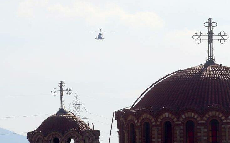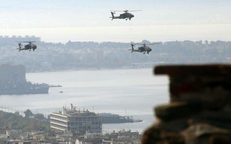 Την ώρα της κατάθεσης στεφάνου μαχητικά αεροσκάφη της Πολεμικής Αεροπορίας έσκισαν τον καθαρό ουρανό πάνω από τη Θεσσαλονίκη αποδίδοντας τιμές, ενώ πέταξαν και στρατιωτικά ελικόπτερα τύπου “Απάτσι”.
