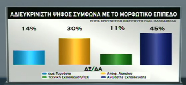 Μια πολύ ενδιαφέρουσα έρευνα για το προφίλ του αναποφάσιστου ψηφοφόρου έκανε το Ερευνητικό Ινστιτούτο του Πανεπιστημίου Μακεδονίας, επιχειρώντας να σκιαγραφήσει την αδιευκρίνιστη ψήφο που αναφέρεται στις περισσότερες δημοσκοπήσεις. Τα αποτελέσματα της έρευνας παρουσιάζουν ιδιαίτερο ενδιαφέρον το μεγάλο – σε αρκετές περιπτώσεις – ποσοστό των αναποφάσιστων ψηφοφόρων είναι εκείνο που μπορεί να ανατρέψει άρδην οποιαδήποτε πρόβλεψη.