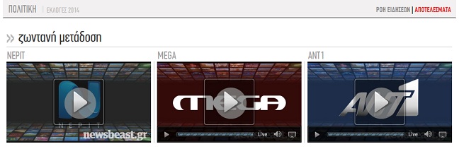 Παρακολουθείστε τη ροή των πολιτικών εξελίξεων και δείτε εικόνα από τρία τηλεοπτικά κανάλια. Από τις 19:00 και μετά, θα αρχίσει η ροή των αποτελεσμάτων. Μείνετε συντονισμένοι…
