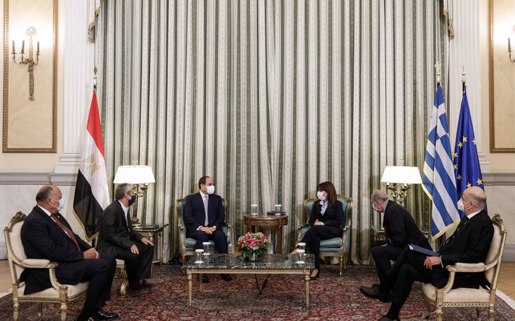 Συνάντηση με τον ομόλογό της της Αιγύπτου, Αμπντέλ Φατάχ αλ Σίσι, ο οποίος πραγματοποιεί επίσημη επίσκεψη στη χώρα μας, είχε η Κατερίνα Σακελλαροπούλου. Σύμφωνα με την πρόεδρο της Ελληνικής Δημοκρατίας, «ορόσημο αποτελεί για τις σχέσεις των χωρών μας, καθώς και για την ευρύτερη περιοχή, η υπογραφή την 6η Αυγούστου και η θέση σε ισχύ της συμφωνίας μερικής οριοθέτησης της ΑΟΖ».