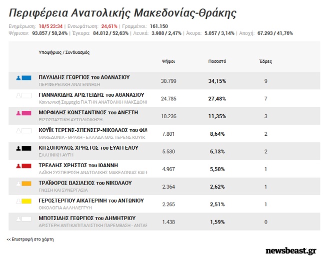 Δείτε τα αποτελέσματα στην Περιφέρεια Ανατολικής Μακεδονίας-Θράκης Ενημέρωση: 23:34 Ενσωμάτωση: 24,61%