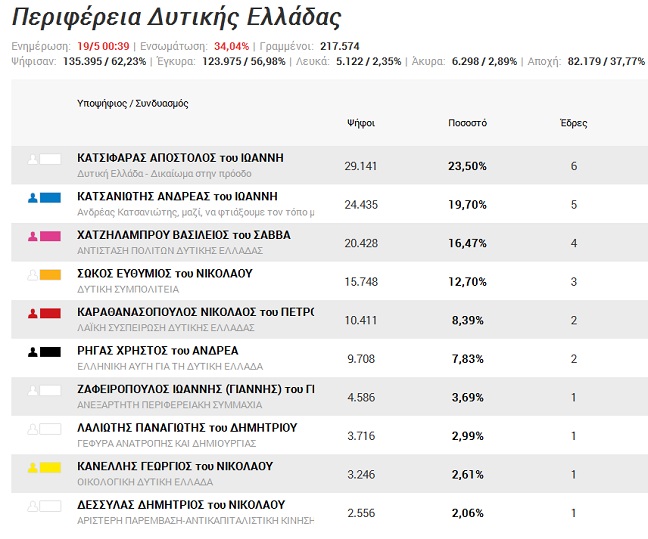 Δείτε τα αποτελέσματα στην Περιφέρεια Δυτικής Ελλάδας Ενημέρωση: 00:39 Ενσωμάτωση: 34,04%