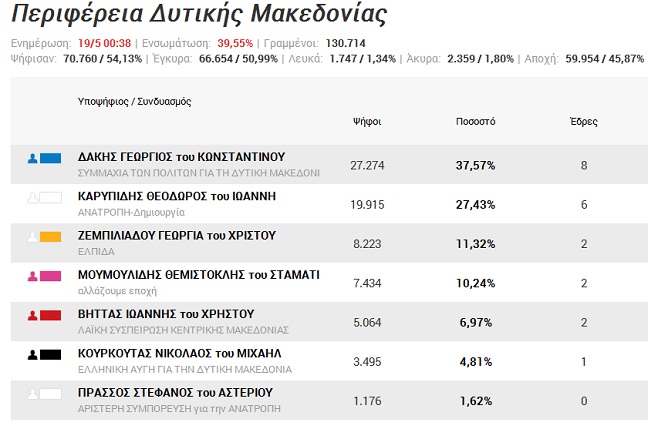 Δείτε τα αποτελέσματα Περιφέρεια Δυτικής Μακεδονίας Ενημέρωση: 00:38 Ενσωμάτωση: 39,55%