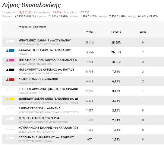 Δείτε τα αποτελέσματα στο δήμο Θεσσαλονίκης Ενημέρωση: 01.12 Ενσωμάτωση: 55,65%