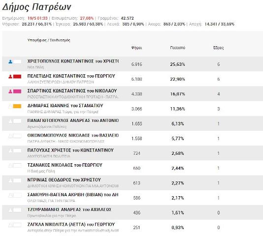Δείτε τα αποτελέσματα στο δήμο Πατρέων Ενημέρωση: 01:33 Ενσωμάτωση: 27,08%