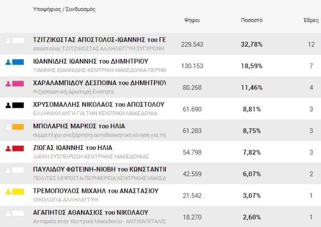 ΠΟΛΙΤΙΚΗ #Εκλογές#περιφέρεια κεντρικής Μακεδονίας Τα μέχρι τώρα αποτελέσματα στην περιφέρεια Κεντρικής Μακεδονίας Προβάδισμα 14 μονάδων για το Τζιτζικώστα με δεύτερο τον Ιωαννίδη 19·05·2014 06:30 Δείτε τα αποτελέσματα στην περιφέρεια Κεντρικής Μακεδονίας Ενημέρωση:02:29 Ενσωμάτωση: 64,97% Διαβάστε σχετικά Γκλέτσος: Δώσαμε την ψυχή μας Πατούλης: Το κόμμα μας είναι το Μαρούσι