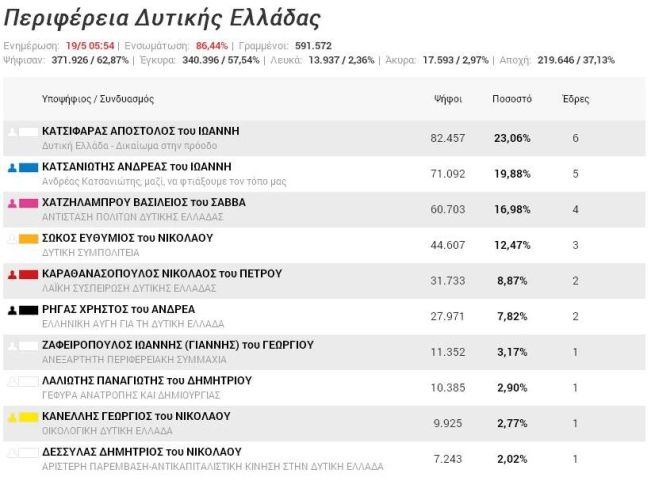 Δείτε τα αποτελέσματα στην περιφέρεια Δυτικής Ελλάδας Ενημέρωση: 5:54 Ενσωμάτωση:86,44%