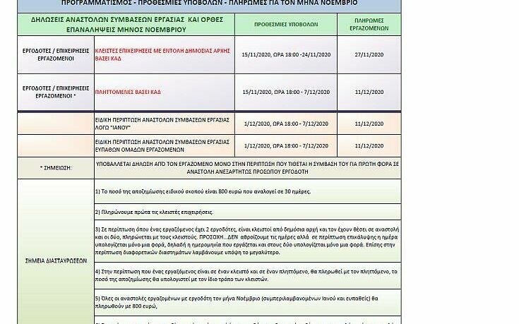 – τις δηλώσεις αναστολών συμβάσεων εργασίας και ορθές επαναλήψεις μηνός Νοεμβρίου και