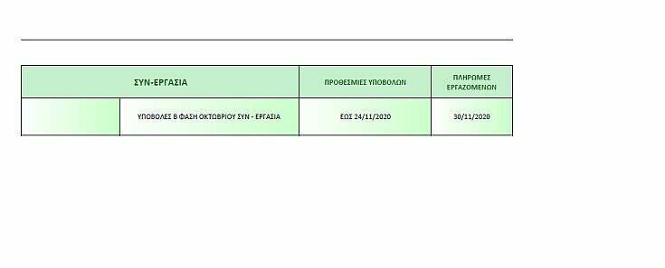 Ο πίνακας παρέχει αναλυτική ενημέρωση σχετικά με τις προθεσμίες υποβολών και τις πληρωμές εργαζομένων σχετικά με: