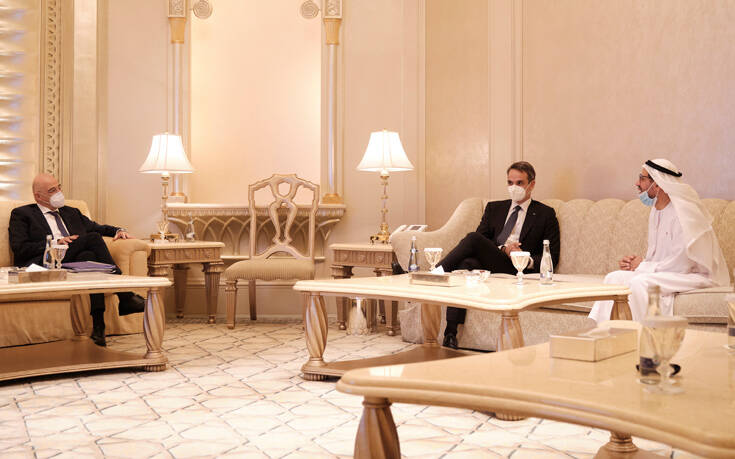 Την ενίσχυση και αναβάθμιση των διμερών σχέσεων σε στρατηγικό επίπεδο επισφράγισε η συνάντηση του Πρωθυπουργού Κυριάκου Μητσοτάκη και της ελληνικής αντιπροσωπείας με τον Διάδοχο του Θρόνου των Ηνωμένων Αραβικών Εμιράτων, Σεΐχη Mohammed Bin Zayed Al Nahyan και την αποστολή των Ηνωμένων Αραβικών Εμιράτων.