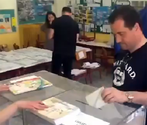 Με καλοκαιρινή αμφίεση προσήλθε σήμερα το πρωί ο Άδωνις Γεωργιάδης στις κάλπες.