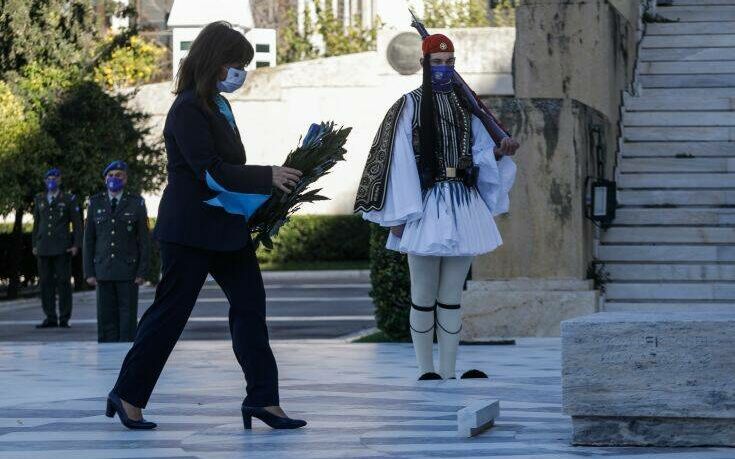Η Πρόεδρος της Δημοκρατίας παρέστη στον εορτασμό της Ημέρας των Ενόπλων Δυνάμεων και στη συνέχεια κατέθεσε στεφάνι στο Μνημείο του Αγνώστου Στρατιώτη. Μετά την τελετή η κ. Σακελλαροπούλου δέχθηκε την ηγεσία των Ενόπλων Δυνάμεων στο Προεδρικό Μέγαρο.