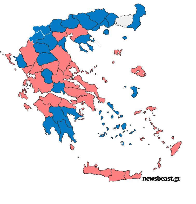 Στις παρακάτω εικόνες μπορείτε να δείτε πως διαμορφώνεται μέχρι στιγμής ο εκλογικός χάρτης μετά τη σημερινή εκλογική αναμέτρηση.