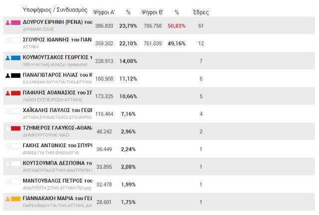 Μεγάλη νικήτρια στη μάχη της Περιφέρειας Αττικής αναδεικνύεται η Ρένα Δούρου, καταφέρνοντας σε μία εκλογική αναμέτρηση-θρίλερ να επικρατήσει του αντιπάλου της Γιάννη Σγουρού.