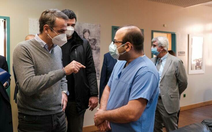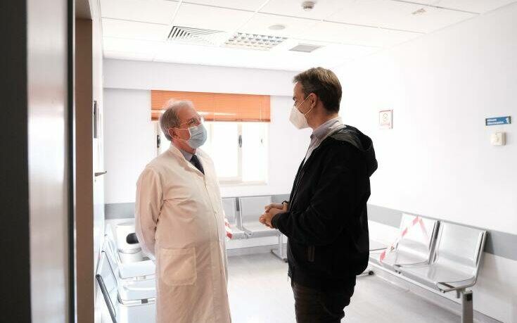 Ο Κυριάκος Μητσοτάκης αναφέρθηκε σε στοιχεία που δείχνουν αισθητή μείωση του ιικού φορτίου. «Η εικόνα που έχουμε είναι ότι αρχίζει και μειώνεται πια αισθητά το ιικό φορτίο. Ο πρώτος δείκτης που κοιτάω εγώ πάντα πια είναι οι συγκριτικές εισαγωγές στις εφημερίες, αυτές μας δίνουν μια πολύ καλή αίσθηση. Για πρώτη φορά το ισοζύγιο εξαγωγών-εισαγωγών είναι πια θετικό, αυτό σημαίνει ότι μειώνεται η πίεση στο Εθνικό Σύστημα Υγείας», τόνισε, ενώ ο Πρόεδρος του Διοικητικού Συμβουλίου του Νοσοκομείου Μιχάλης Καραβιώτης ανέφερε χαρακτηριστικά ότι στην εφημερία που μόλις τελείωσε οι εισαγωγές ήταν πολύ λιγότερες. «Είχαμε 5-6 εισαγωγές, ενώ στην προηγούμενη είχαμε περισσότερες από 80», είπε.