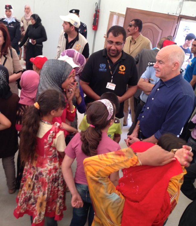 Την Ιορδανία και συγκεκριμένα τον καταυλισμό Αλ Αζρακ, όπου φιλοξενούνται πρόσφυγες από τη Συρία, επισκέφτηκε ο Γιώργος Παπανδρέου. Κατά τη διάρκεια της επίσκεψής του, ο πρώην πρωθυπουργός κάθισε μαζί με τα παιδιά του καταυλισμού και έπαιξε μαζί τους με τουβλάκια Lego, όπως φαίνεται και στις φωτογραφίες που αναρτήθηκαν στην προσωπική του ιστοσελίδα.