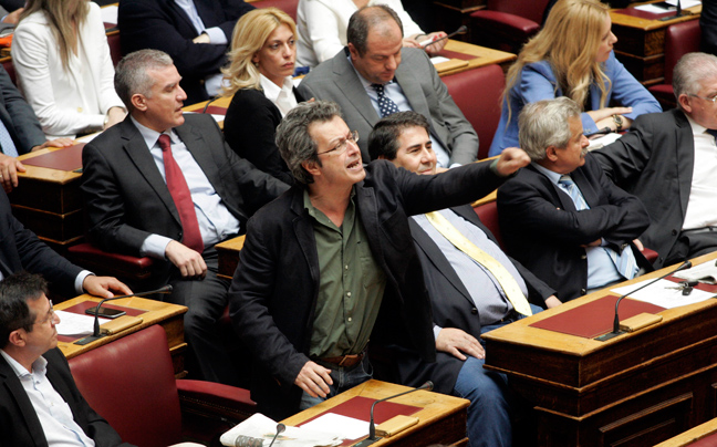 «Σκάσε ρε! Σκάστε ρε αδερφάρες, π…ς. Μόνο με καρότα βολεύεστε». Αυτά έλεγαν ουρλιάζοντας προς τον Πέτρο Τατσόπουλο οι βουλευτές της Χρυσής Αυγής Νίκος Μίχος και Δημήτρης Κουκούτσης όταν ο ανεξάρτητος βουλευτής τους αποκάλεσε «φασίστες». Μάλιστα, στο παρά πέντε αποφεύχθηκε το να πιαστούν στα χέρια.
