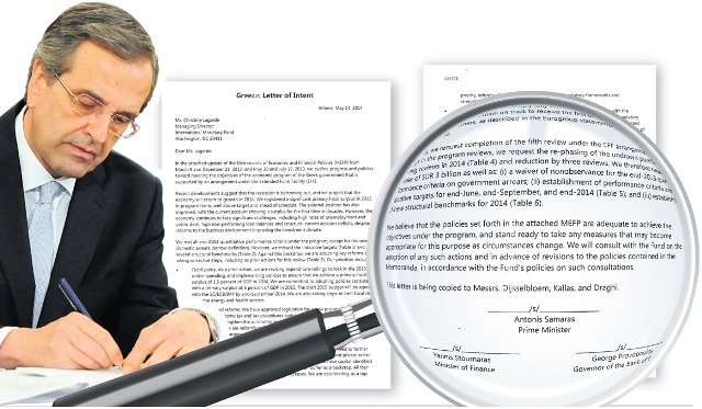 Επιστολή των Αντώνη Σαμαρά, Γιάννη Στουρνάρα και Γιώργου Προβόπουλου στην οποία παρέχουν εγγυήσεις στην τρόικα και ανοίγουν παράθυρο λήψης νέων μέτρων αν κριθεί αναγκαίο φέρνει σήμερα στη δημοσιότητα η «Αυγή».