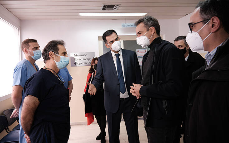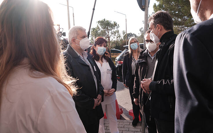 «Ήρθα να σας πω ένα μεγάλο ευχαριστώ για την πολύ μεγάλη προσπάθεια που καταβάλλετε. Ξέρω ότι το νοσοκομείο έχει δοκιμαστεί πολύ. Αντέξαμε όμως και θα εξακολουθούμε ν’ αντέχουμε. Θέλω να ξέρετε ότι έχετε την αμέριστη στήριξή μου σε όλο τον αγώνα τον οποίο δίνετε», είπε ο πρωθυπουργός, συνομιλώντας με τη διοίκηση και εργαζόμενους του νοσοκομείου, που τον υποδέχθηκαν, και αναφέρθηκε στη μεγάλη μάχη στο νομό για την αντιμετώπιση της πανδημίας.