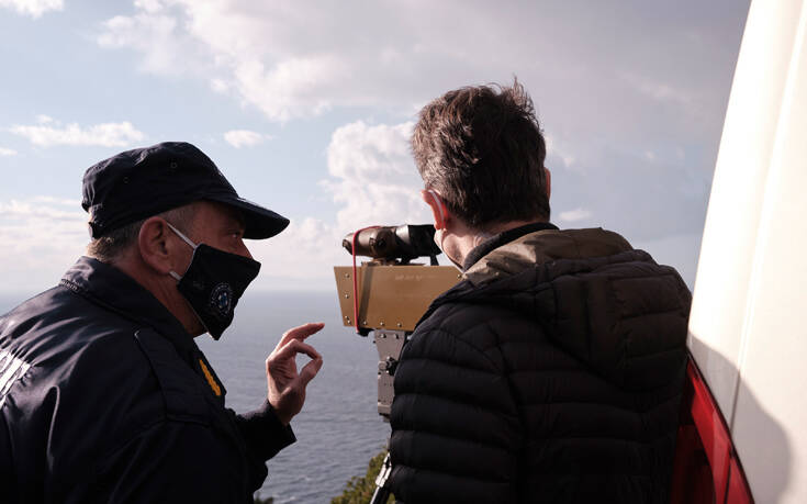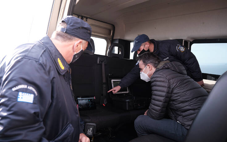 Πρώτος σταθμός της περιοδείας του Κυριάκου Μητσοτάκη στη Λέσβο ήταν σε έναν από τους κινητούς σταθμούς επιτήρησης των θαλάσσιων συνόρων της ΕΛ.ΑΣ. όπου ενημερώθηκε από τον αστυνομικό διευθυντή βορείου Αιγαίου Λευτέρη Ντουρουντούς για την επόπτευση της θάλασσας με σύγχρονα μέσα σε συνεργασία με το Λιμενικό.
