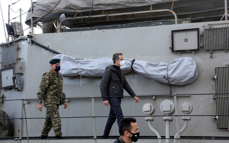 Ο πρωθυπουργός, συνοδευόμενος από τον αρχηγό ΓΕΕΘΑ Κωνσταντίνο Φλώρο, ανέβηκε στη συνέχεια στην κανονιοφόρο «Κάσος» του Πολεμικού Ναυτικού.