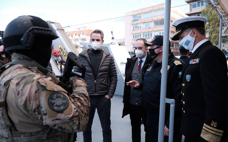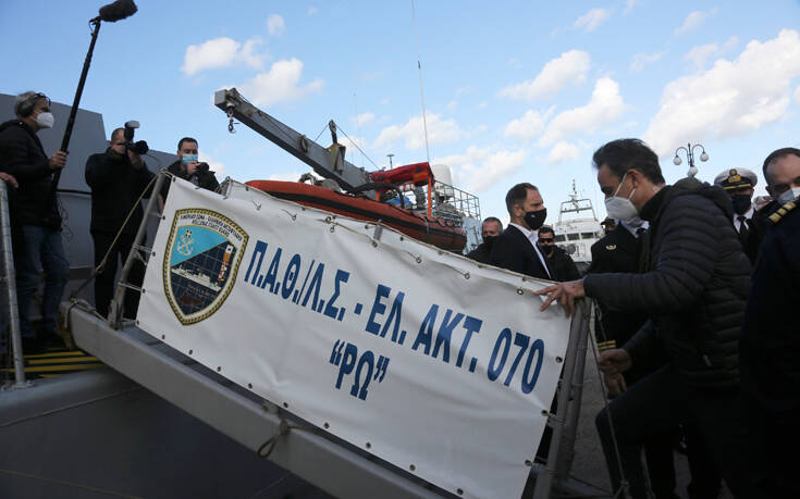 Και βέβαια στο πολύ σημαντικό έργο, στο Εθνικό Σύστημα Ολοκληρωμένης Επιτήρησης των θαλάσσιων συνόρων μας, το οποίο θα μας δώσει τη δυνατότητα να έχουμε 24 ώρες το 24ωρο, 365 μέρες το χρόνο, μία πλήρη εικόνα του τι συμβαίνει στα θαλάσσια σύνορα μας, ώστε να μπορούμε να παρεμβαίνουμε γρήγορα και αποτελεσματικά και να κάνετε καλύτερα τη δουλειά σας. Αρχηγέ και πάλι ευχαριστούμε πάρα πολύ», είπε ο Κυριάκος Μητσοτάκης.