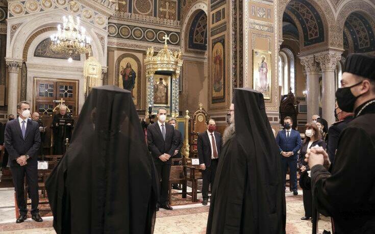 Την πρωτοχρονιάτικη δοξολογία στη Μητρόπολη των Αθηνών παρακολούθησαν σήμερα το πρωί, η Πρόεδρος της Δημοκρατίας, Κατερίνα Σακελλαροπούλου και ο πρωθυπουργός, Κυριάκος Μητσοτάκης.