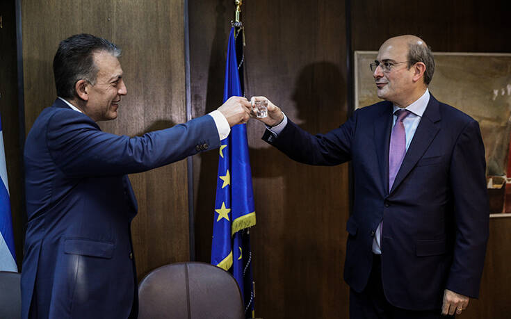 Το νέο υπουργό Εργασίας, Κωστή Χατζηδάκη υποδέχτηκε στο υπουργείο ο μέχρι πρότινος υπουργός Γιάννης Βρούτσης. Η τελετή παράδοσης-παραλαβής έγινε παρουσία του υφυπουργού Εργασίας και Κοινωνικών Υποθέσεων Πάνου Τσακλόγλου, της υφυπουργού Εργασίας και Κοινωνικών Υποθέσεων Δόμνας Μιχαηλίδου και της νέας υφυπουργού Εργασίας, Μαρίας Συρεγγέλα, η οποία θα είναι στο εξής αρμόδια για τη δημογραφική πολιτική και την οικογένεια και μπήκε στην κυβέρνηση με τον ανασχηματισμό.